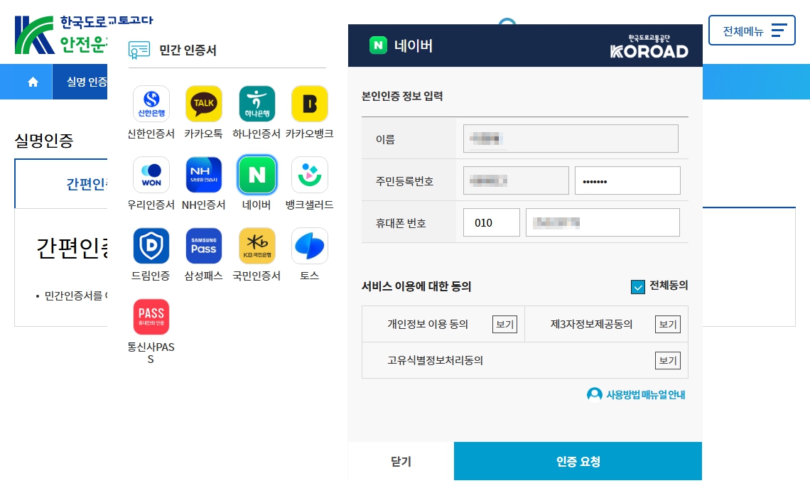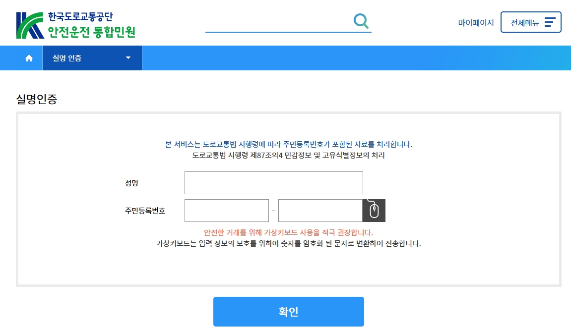 - 도로교통공단 사이트 접속