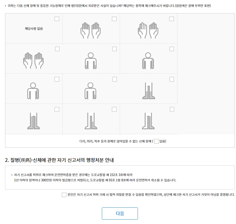1종 보통 또는 대형/특수 면허를 가진 분은 적성검사도 필요합니다.